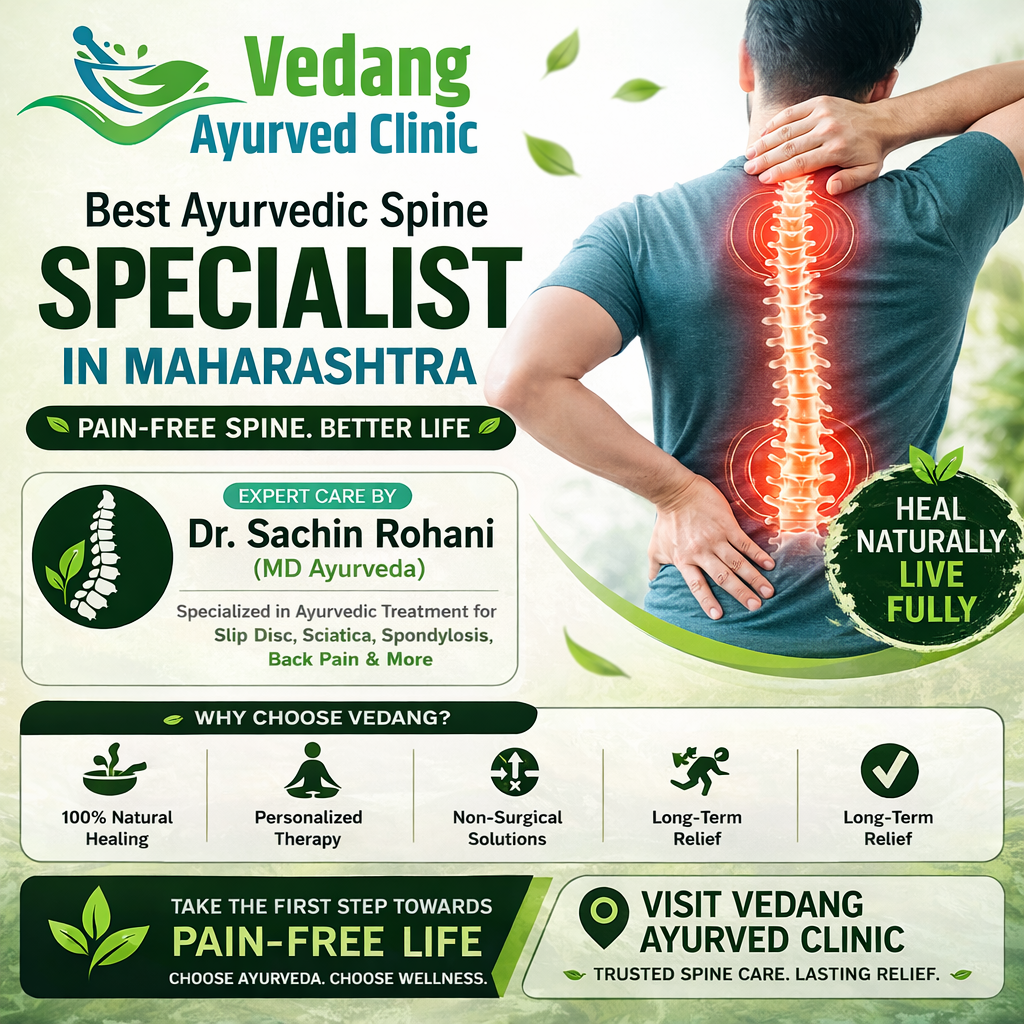 Searching for the best Ayurvedic spine specialist in Maharashtra? Get expert, non-surgical spine care at Vedang Ayurveda Clinic under the trusted guidance of Dr. Sachin Rohani (MD Ayurveda), known for delivering effective and long-lasting relief from spine-related conditions through authentic Ayurvedic therapies.