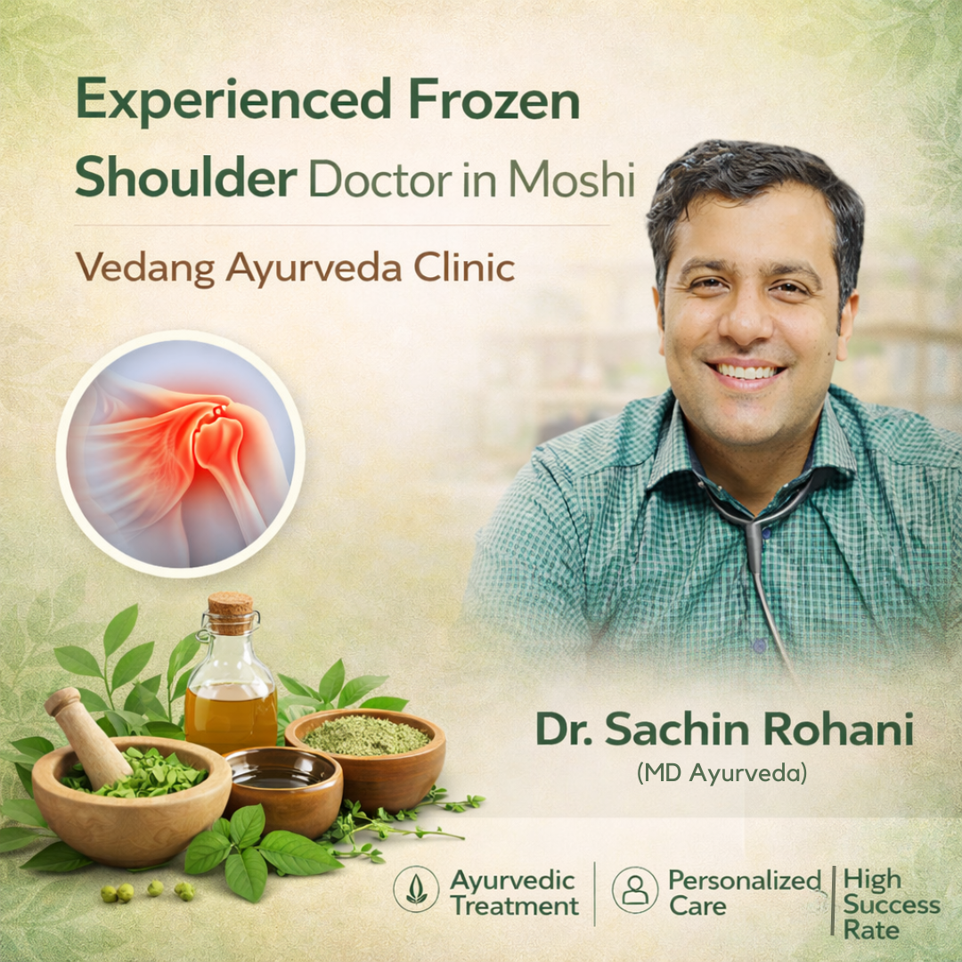 Looking for an experienced frozen shoulder doctor in Moshi? Consult Dr. Sachin Rohani (MD Ayurveda) at Vedang Ayurveda Clinic for effective Ayurvedic treatment. Get personalized care to reduce pain, improve mobility, and restore shoulder function naturally.