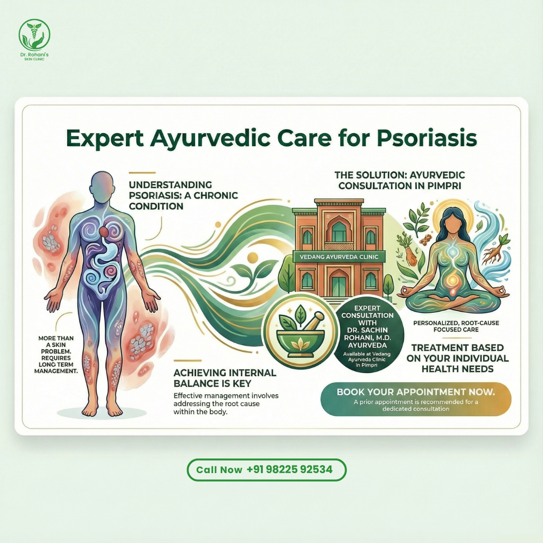 At our Pimpri clinic, Dr. Sachin Rohani provides Ayurvedic consultation for psoriasis focused on understanding the root cause and planning personalized care based on individual health needs.
