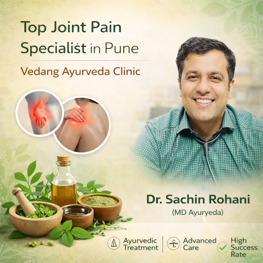 Looking for a top joint pain specialist in Pune? Consult Dr. Sachin Rohani (MD Ayurveda) at Vedang Ayurveda Clinic for expert Ayurvedic treatment. Get personalized care to reduce pain, improve joint mobility, and achieve long-lasting relief naturally.